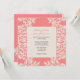 These Coral Fleur de Lis Modern Wedding Invitations feature a Damask style Fleur de Lis pattern in rice paper white on a coral background. Add your information using the template. Click "customise it" to make changes to the font and text placement.