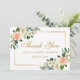 Watercolor Coral Floral Gold Wedding Thank You Card