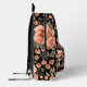 A large floral contemporary print with giant coral colour flowers and many small coral flowers. Leaves are silver sage and the background is chic black. Personalise. Seamless.