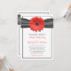 Coral Gerbera Daisy Grey Ribbon Invitation