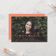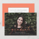 This full bleed photo graduation announcement features the word "graduate" written in coral script across the front. It has space for the graduate's name, class year, and school. The back of the card can be used for a personal message or graduation party invitation details.