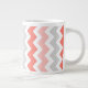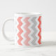 Elegant and modern peach orange pink, grey and white retro chevrons zigzags vintage stripes pattern jumbo coffee mug, fully customisable with your text or photo, create a truly unique coffee mug for your next coffee party.