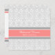 Custom rehearsal dinner party invitations in modern and elegant peach pink, grey and white classic floral damask vintage pattern. Personalise the text to create a unique invitation for your wedding rehearsal dinner. Contact us to request a colour change. Available in many matching wedding products.