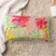 Coral Hibiscus Flower Tropical Lumbar Throw Pillow