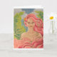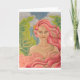 A lovely mermaid illustration graces this unique greeting card! A rosy-haired mermaid decked in pearls is framed by delicate green tail fins and the puffy clouds of an overcast ocean day. Perfect for fantasy enthusiasts. Blank on the inside.