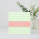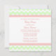 Personalised baby shower invitations in elegant and modern peach pink, pastel mint green and white fun chevron zigzags pattern. Customisable with your text, contact us to request a colour change.