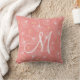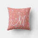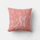 Coral Modern Ginkgo Monogram Throw Pillow