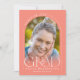 This trendy coral simple minimalist graduation card serves as both a graduation announcement and grad party invitation, and features a photo, arch frame and elegant modern typography.
