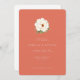 This is a minimalist style image featuring an elegant wedding invitation. The background is a warm, soft coral color that sets a romantic and inviting tone. At the center, there's a beautifully detailed illustration of a white peony flower with green leaves, adding a touch of natural beauty to the design. The text is simple yet sophisticated, announcing the union of Isabella & Patrick on Saturday, June 6, 2025, at Seaside Palms Resort in Naples, Florida, followed by dinner and dancing. It exudes a sense of joy and celebration, making it perfect for marking this special occasion.