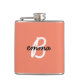 Coral Name | Initial Modern Trendy Stylish Orange Hip Flask