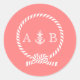 Coral Nautical Rope and Anchor Monogram Classic Round Sticker