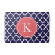 Coral Navy Blue Custom Monogram Quatrefoil Pattern Bath Mat