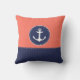 Coral Navy Blue Nautical Anchor Design Custom Name Cushion