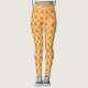 Leggings in a batik pattern in shades of coral orange, cream, and beige, accented with black