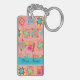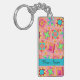 Coral Orange Colourful Quilt Blocks & Personalised Key Ring