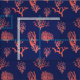 Trendy coral peach and navy blue patterned coastal fabric