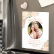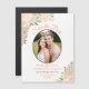 These beautiful magnetic wedding save the date cards feature a rustic yet elegant hand painted floral design with your photo in an oval frame surrounded by watercolor roses, blossoms, and flowers in shades of coral, peach, and light orange, with a bevy of eucalyptus leaves, greenery, and foliage. The typography features fancy script lettering. This stylish boho chic card is a great way to make sure your friends and family are aware of your upcoming wedding.