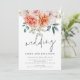 Coral Peach Peonies Florals Script Wedding Elegant summery coloured florals flow down from the top. Wedding is in a set trendy handwriting style script. Easily personalise the rest of the text to your own details. For the convenience of your guests to rsvp and see more details they can scan the QR code leading to your wedding website. Your QR code will be automatically generated to update the sample code in the design, when you simply change the sample URL in the template with your own wedding website URL.