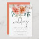 Coral Peach Peonies Florals Script Wedding Invitation