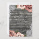 Coral Peach Roses Grey Rustic White Lace Wedding Invitation