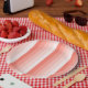 Coral peach shadow stripes paper plate