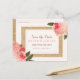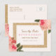 Coral Peonies and Gold Glitter Save the Date Postcard - Designed by Colourful Designs Inc. Copyright 2015. Text can be personalised.