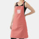 All-over print aprons in Coral Pink solid colour background (#F88379) and a cover logo . Personalise it now .Warm and inviting, suitable for casual and family-friendly restaurants.Design by Alma Wad .It comes in three different sizes with straps in matching colours .