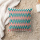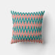 Coral pink and teal chevron square pillow. Coral pink, teal and white alternating zigzag stripes.
