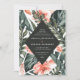 Coral pink and tropical leaf foliage wedding invitation. Part of a stunning elegant wedding suite. Modern green, blue and coral tropical collection.