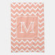 Coral Pink and White Chevron with Custom Monogram. Tea Towel