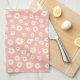This cute and groovy kitchen towel features spring bohemian daisies on coral pink.