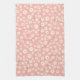Coral Pink Boho Spring Daisies Pattern Tea Towel
