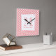Coral Pink Country Style Gingham Pattern Monogram Square Wall Clock