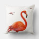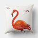 Coral Pink Flamingos on White Cushion