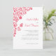 Butterfly garden coral pink floral wedding invitation design. Detailed butterfly floral pattern corner in coral pink. Customise with your names and your wedding information in deep sage lettering. Designed to match our Coral Pink Floral Butterfly Garden Wedding Collection.