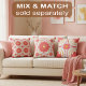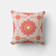 This hand‑drawn throw pillow is covered with large coral pink flowers with sunny yellow centres, surrounded by bold orange and yellow geometric accents on a cream background. The repeating pattern creates a vibrant retro style with a mid‑century modern twist. It’s a colourful accent piece for your sofa, bed, or reading nook.