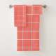 Coral pink geometric grid pattern. This geometric design with a coral background looks great on bath towels, bath mats, shower curtains, pillows, and blankets. Its vibrant coral aesthetic on phone cases, bags, and other accessories makes it an ideal gift for coral pink lovers.