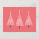 Coral Pink Ombre Retro Modern Christmas Trees Holiday Postcard