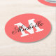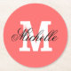 Elegant coral pink personalised monogram paper coasters in round or square shape. Classy design with stylish script typography and custom name initial letter. Monogrammed party accessories. Great for Birthday, wedding, anniversary celebration etc. Customisable colours. Change quantity to get the cheapest price.