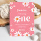 Adorable Coral Pink Retro Groovy Daisy Florals 1st Birthday Invitation.