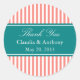 Coral Pink, Teal and White Stripes Thank You Classic Round Sticker