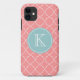 Coral pink colour trellis lattice pattern iPhone 5 cover Elegant quatrefoil pattern with custom monogram K letter. Add your personalised name initial. Girlie vector design.