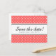 Coral pink & white polkadot save the date postcard