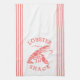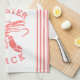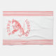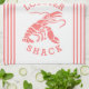 Elegant modern coral red lobster illustration with customisable curved text. White and coral decorative stripes.