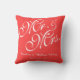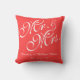 Personalised Coral Red Mr. and Mrs. Wedding Pillow. Design by Elke Clarke©. Available at www.zazzle.com/monogramgallery. Classy, personalised, custom solid colour background of coral, customisable with bride and groom names in white script font and wedding date. Beautiful design is perfect for wedding gifts, sweetheart pillows, wedding anniversary gifts and more. Use edit menu to change colours or visit our store for more designs and colour options.
