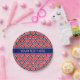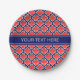 Coral Red Navy 5c Moroccan #5DS Navy Name Monogram Paper Plate