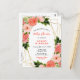 This fun and whimsical baby shower postcard features watercolor coral pink red roses and foliage on a gold geometric frame. The text combines handwritten script and serif fonts for a stylish and modern look. This is perfect for a spring or summer rustic baby shower.