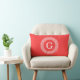 Coral Red Wht Greek Key Rnd Frame Initial Monogram Lumbar Cushion