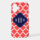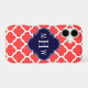 Coral Red and White Moroccan Quatrefoil Trellis Pattern #5, Navy Blue Quatrefoil 3 Initial Monogram
