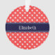 Coral Red, Wht Polka Dots Navy Blue Name Monogram Ornament
